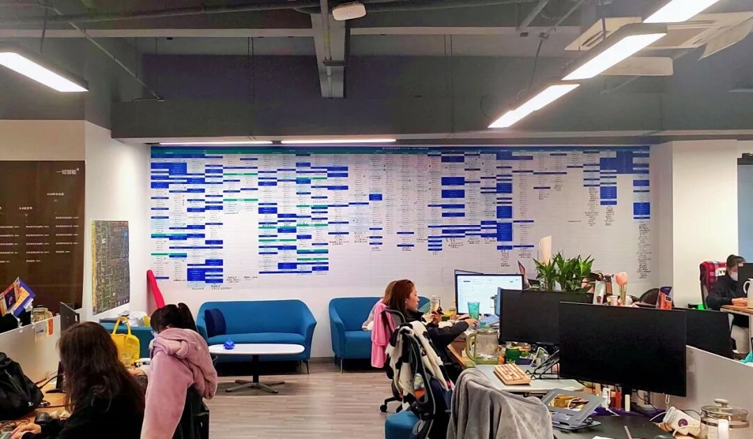 进入一知智能的业务办公室,最显眼的是一幅全尺寸的客户墙,用明确的颜色划分着不同推进阶段的目标行业客户,同时用透明化的方式,把标准化的客户服务流程、算法模型迭代进度全部印刷出来贴到了墙上。