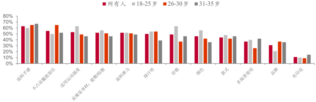 从消费习惯来看,女性占比越高的品牌(尤其是以解决用户痛点为主的新锐品牌)消费者对于价格的敏感度越低,由于女性本身细腻、感性的特点使其对于产品上身曲线美效果、颜色、面料等方面的要求更高;