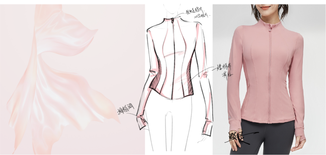 曲线美不仅仅是一个版型的问题,如何在面料拉伸度、回弹率、勾丝、耐磨等量值的参数控制方面达到一种微妙的平衡也是技术的动态体现,甚至某种纱线与工艺的配合、微调后就能起到更好的曲线美效果,这些全都源自一次次反复的试验,及在产品端更深入的投入。