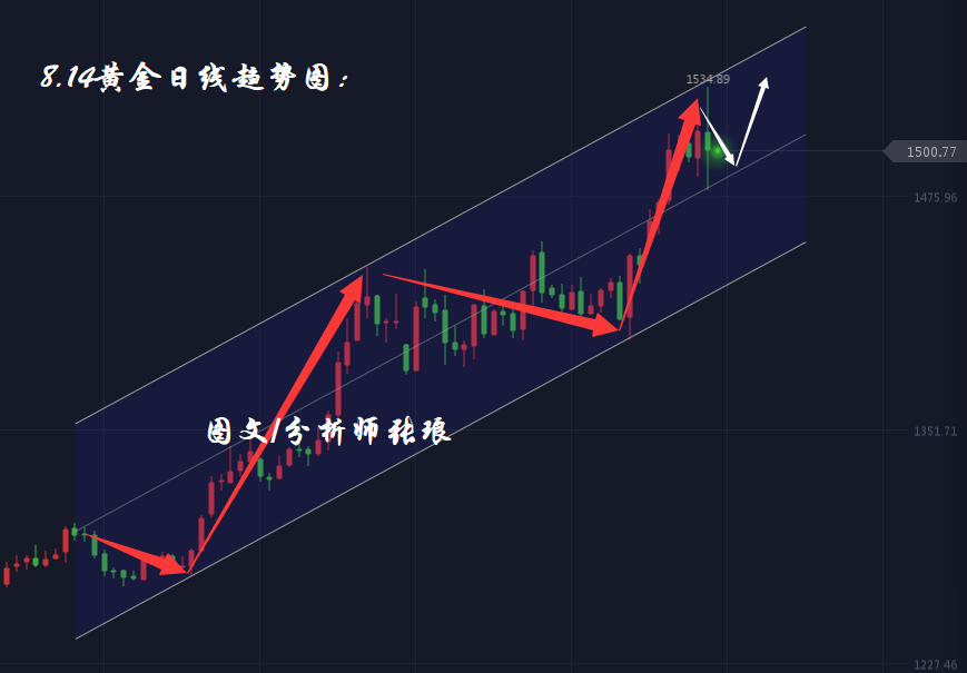 昨日黄金午后欧盘上探至1534美元/盎司,晚间美盘市场发出重磅消息,中方与美方将就经贸问题通话,宣布美国将对中国输出的3000亿美元征收部分10%的关税推迟至12月15日实施。导致昨日盘中市场风险一度转向,黄金最低下探至1480美元之后,迅速反弹至1500美元关口维持震荡运行。