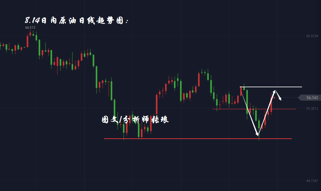 原油昨日晚间美盘在市场情绪推动之下,成功上破日线布林带中轨55.4美元压力后,延续走高上探至57.4美元附近。原油日线整体来看,布林带整体持平运行,油价处于布林带中轨支撑上方运行。考虑到今日晚间将有EIA原油库存数据公布,日内市场或将出现横盘或交投平淡的情况,但是可以出现较多的进场机会。因此日内上方重点关注57.0-57.4美元压力区间,下方关注布林带中轨55.6美元支撑即可,若油价下破55.6则顺势追空。不论EIA数据公布结果如何,保持逢高看空策略为主,低位看多为辅。