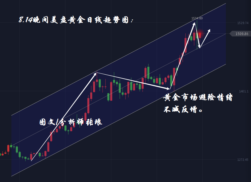 今日盘中黄金出现小幅技术面回撤走弱至1494美元支撑后,午后欧盘时段金价快速反弹走高,与预期中一致金价重回1510美元上方。目前日线上行通道来看,黄金整体处于高位震荡区间,叠加市场避险情绪的走高,整体上保持延续上攻走强的形态,上方依次关注周一顶部1520美元、昨日高位1534美元。下方则以1500美元再次作为强支撑。有一点可以肯定的是,近期黄金的避险情绪不仅没有丝毫减弱,反而较前期有较大幅度的增强。晚间美盘张琅老师建议1500-1504美元支撑区间重点看多。行情若上攻至1520美元,则有望上攻至1534美元,反之则将再次回撤蓄势等待上攻。