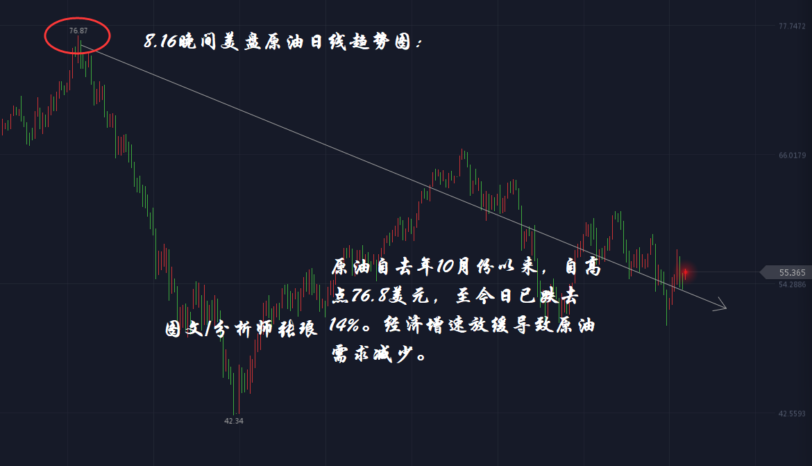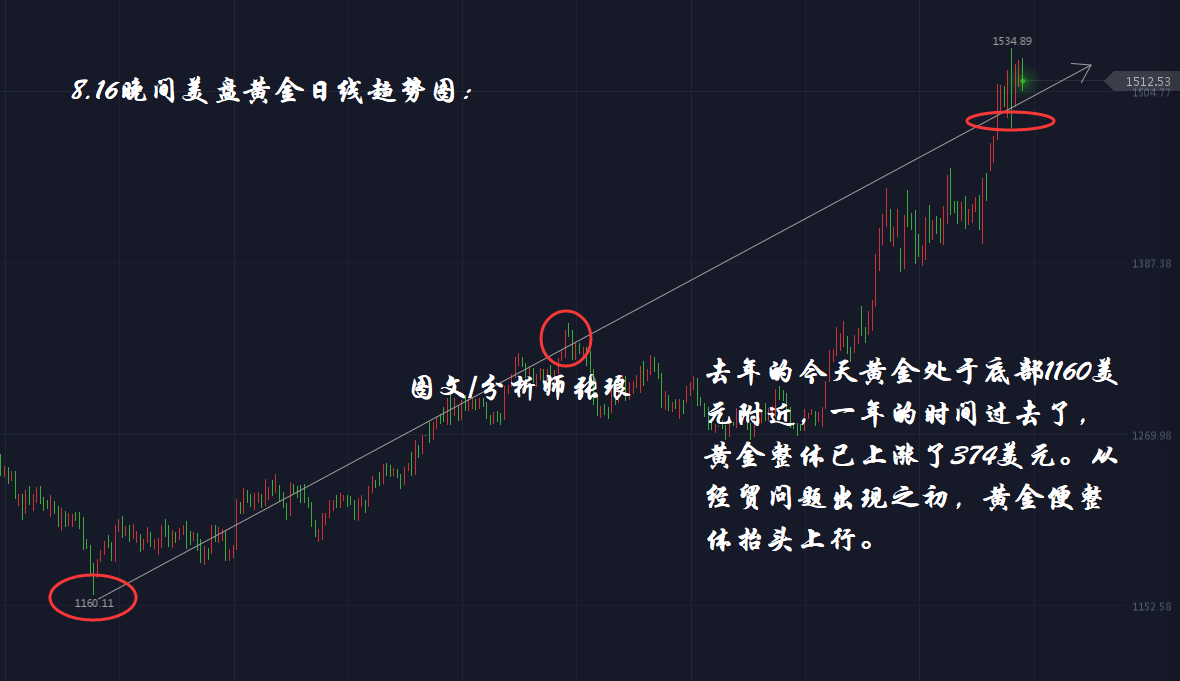 要知道黄金去年的今天还处在1160美元低位震荡,整整一年过去了,黄金现在已经上探至1534美元,单边上涨近374美元。而原油就如同张老师一直提到的“全球经济下行导致原油需求减少,进而导致油价延续走低。”原油也从去年10月份高点76.8美元附近,到今天已跌去14%。