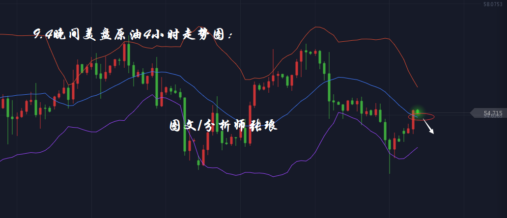 黄金今日周三(9月4日)日内整体震荡走高,盘中最高上探至54.8美元/桶附近后整体出现回撤走弱。技术面4小时走势图,目前布林带整体出现向下缩口的趋势,油价在上破布林带中轨压力之后震荡回撤走弱。目前原油市场内整体仍主要受到需求减少而影响。因此预期晚间美盘原油整体将考验下方54.5美元/桶支撑,若顺利破位则后市原油有望延续走低至54.0美元/桶关口。
