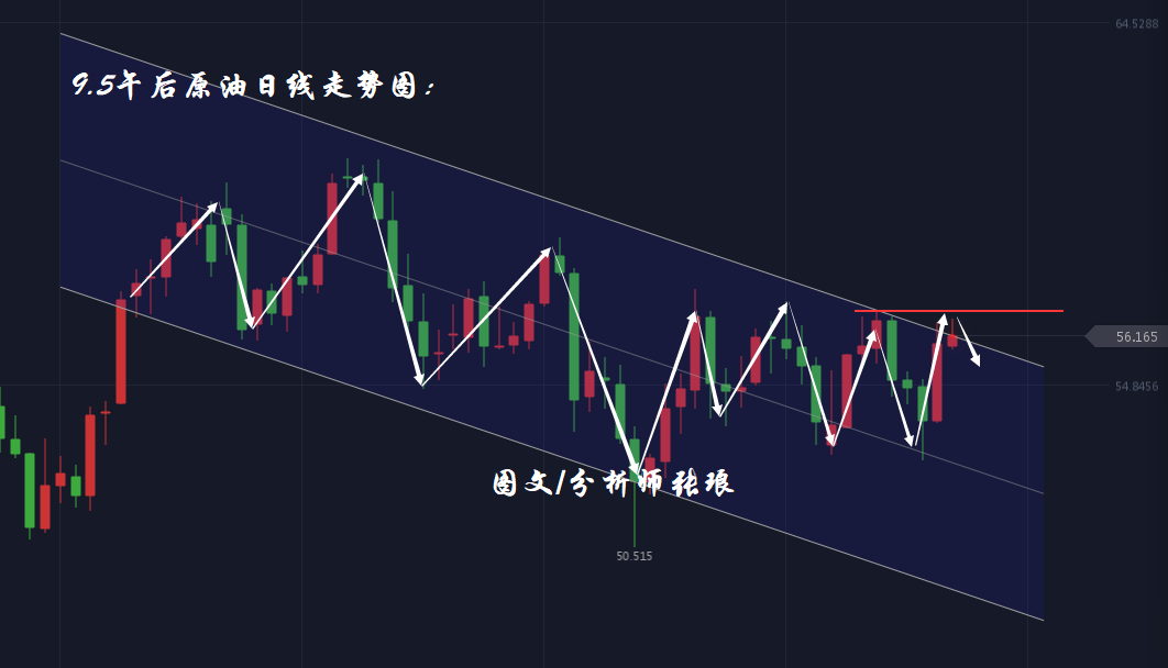 今日早盘原油延续昨日多头趋势上攻至昨日高点上方56.6美元/桶后,再次重新回归技术指标内运行,目前回撤至56美元/桶关口附近震荡运行。技术面日线走势图,油价整体仍处于下行走弱的通道之中,今日早盘油价已两次对通道线上轨施压短线出现虚破的情况。昨日全球主要经济体公布的PMI值均利好油价,俄罗斯与美国这两大产油国纷纷释放利好言论。但是就实际情况而言,短暂的利好并不能主导油价最终的走势,全球经济下行风险带来的需求降低,不仅仅是一份减产协议所能解决的。今日晚间原油市场重点关注EIA原油库存数据的直接影响,预期今日原油库存将再次录得增加,进而对油价施压。因此预期原油日内后市有望技术面震荡上攻至56.6—56.9美元/桶压力区间之后,整体回撤走弱下探至55.3,乃至54.3美元附近。