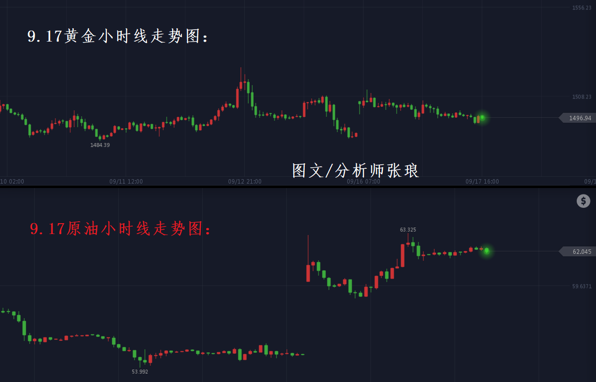 今日周二(9月17日)黄金、原油日内整体表现平淡,市场有等待大消息面之前的宁静走势。沉寂的市场正在酝酿着下一波单边行情走势。无疑,黄金市场是在等待本周的美联储利率决议,而原油市场则是在等待,美国及沙特进一步释放关于原油供应问题的言论。通过行情走势不难发现,目前市场为避免不必要的风险选择观望,而晚间进入美盘时段,则市场将再次活跃起来。