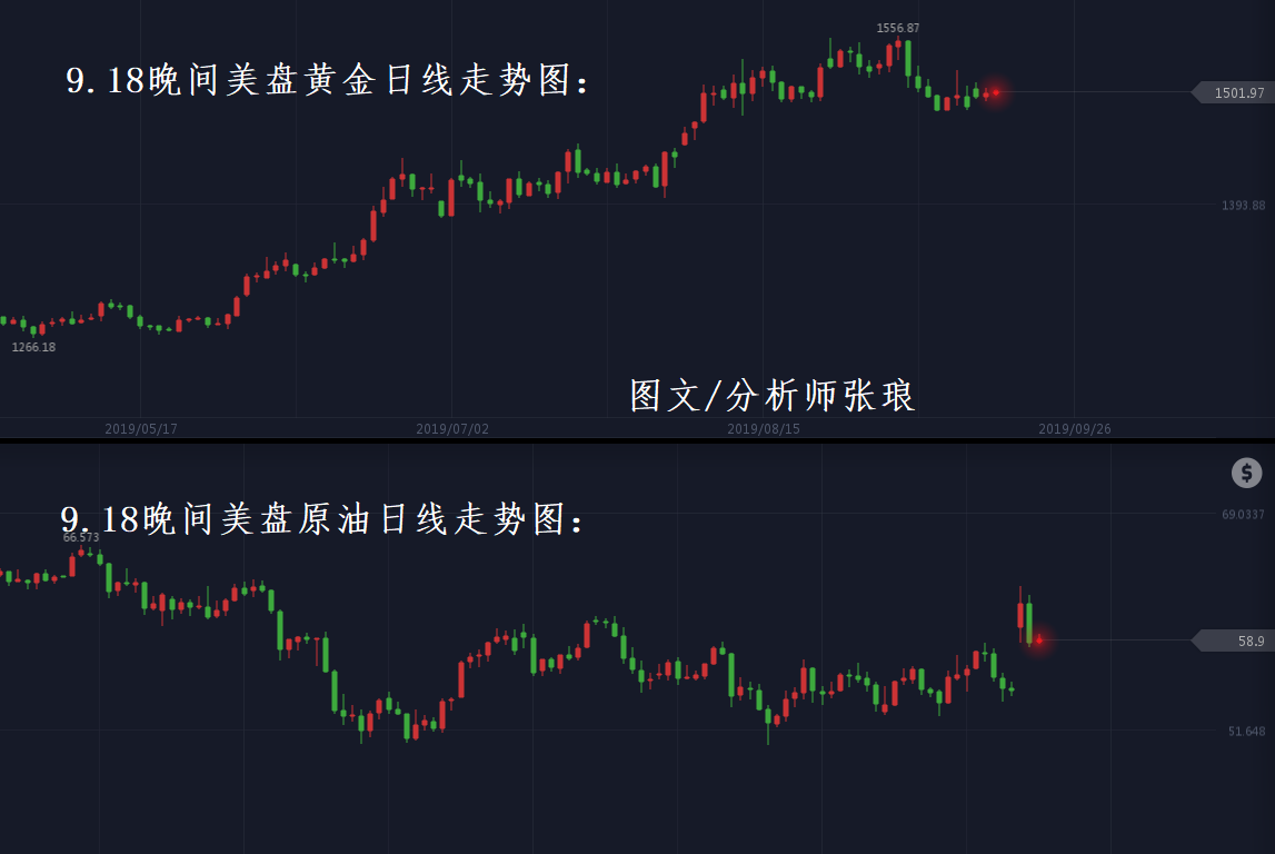 今日周三(9月18日)黄金、原油日内双线横盘震荡调整,说是调整或许用市场观望情绪浓厚表达更为贴切。黄金整体于1500美元/盎司上下窄幅震荡运行;原油则于59美元/桶窄幅震荡,日内黄金、原油暂未显露出多空头趋势。目前在全球经济增速放缓的背景下,不论是产品走势,还是市场投资者情绪都受到一定程度的影响。