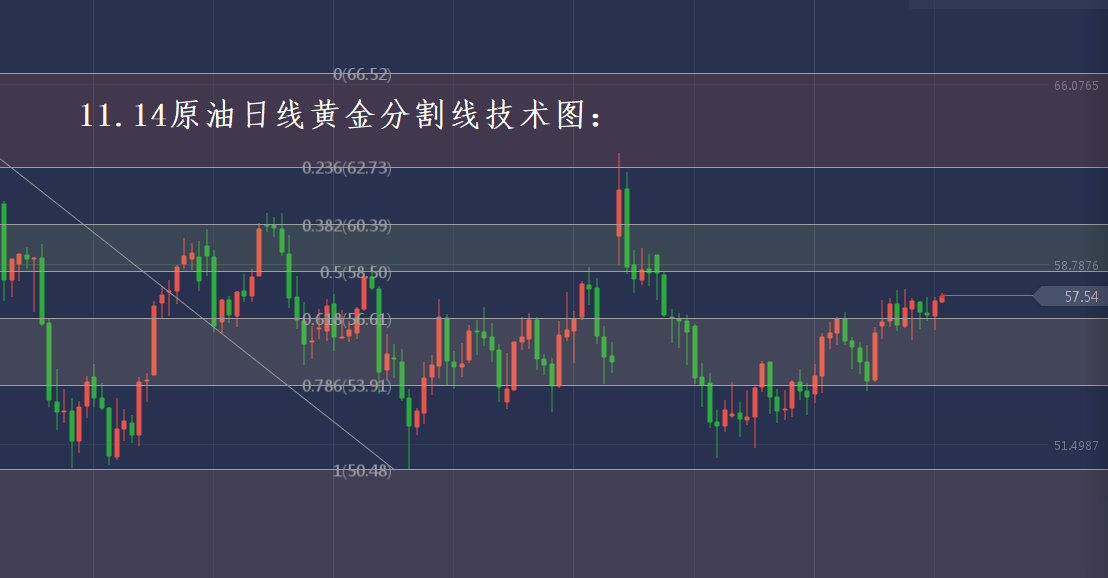 原油日线黄金分割线来看,油价昨日下破黄金分割线0.618(56.6美元)支撑后,尾盘受到市场消息影响油价震荡走高,回吐跌幅再次站上前期高位附近。但是相信待消息面影响消退后,原油或将再次出现回撤走弱下探0.618(56.6美元)支撑。因此日内操作上关注上方57.8美元上方,伺机选择空单机会。