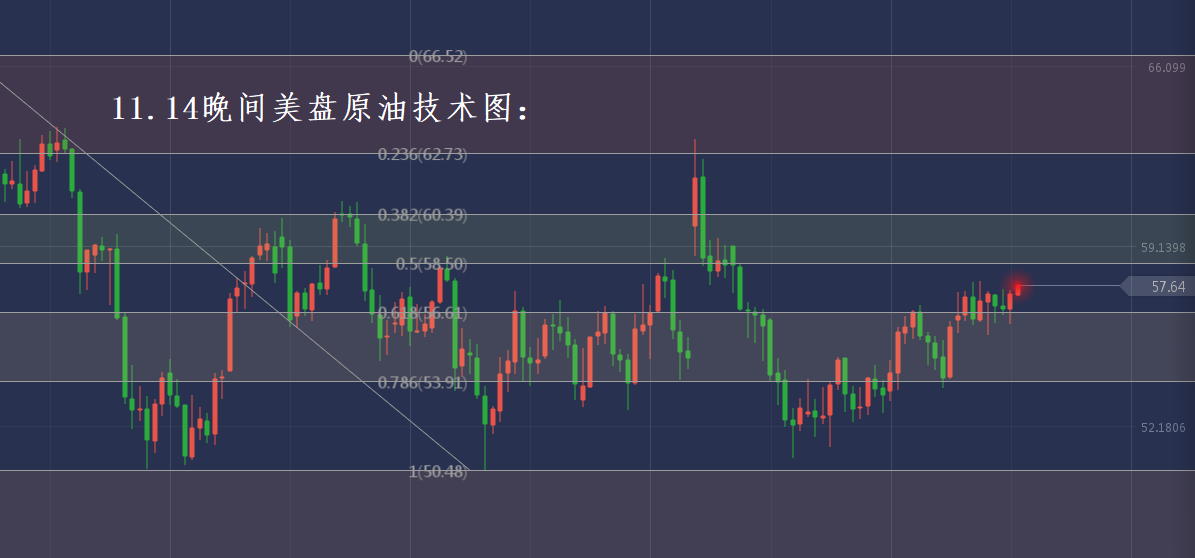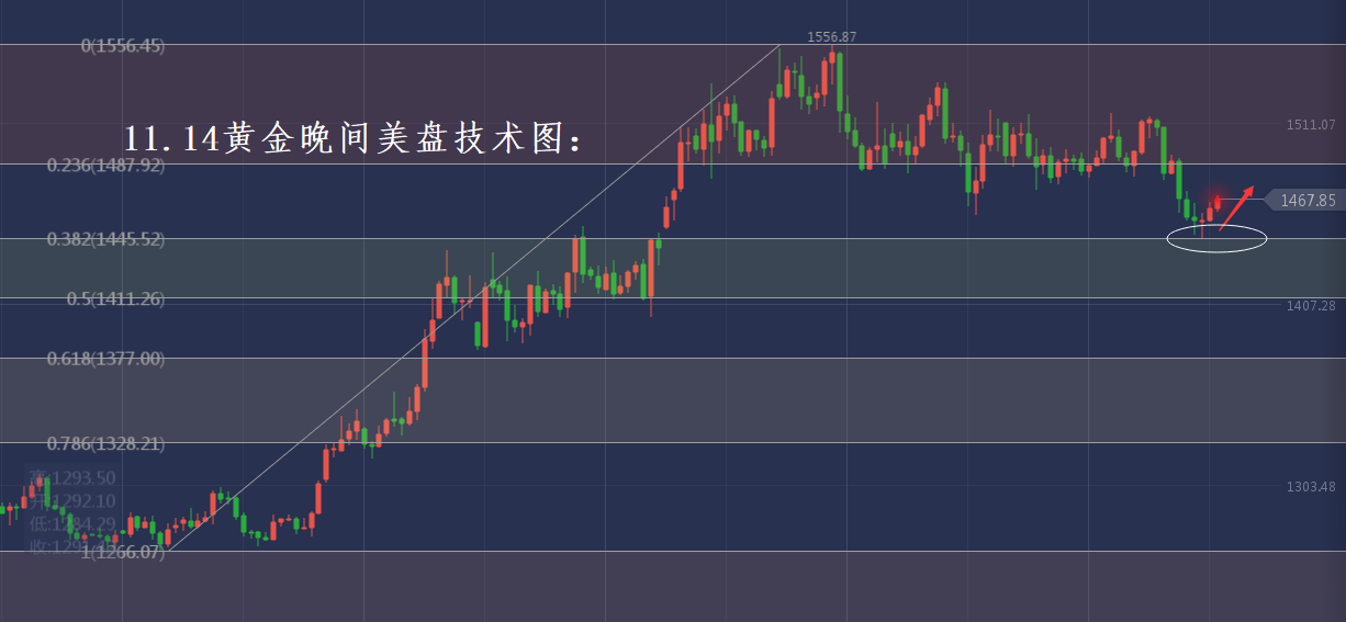 今日11月14日周四,日内黄金、原油齐头并进,黄金反弹上攻走高如预期之中反弹上探至1470美元附近;原油依托57美元关口支撑,盘中最高上探至57.5美元附近。目前市场消息虽较为平淡,但是黄金原油同时上涨,预期晚间美盘两者走势将出现分化。