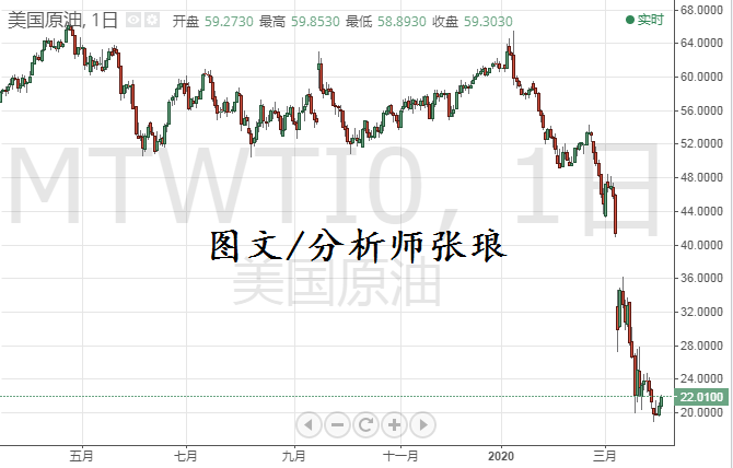 今日日间不论是黄金,还是原油,均与张老师预期一致。金价仍围绕1600美元/盎司附近震荡运行,原油则依托20美元/桶出现阶段性小幅反弹走高。整体而言,黄金原油暂时处于短线调整阶段。但是目前也是我们提前布局的较佳机会,当前市场中存在对疫情的巨量担忧,带来了很大的市场情绪波动,叠加各国主债风险的加大,多国延续的禁闭状态更是基本面中看涨贵金属的主要原因。沙特和俄罗斯的石油价格战已持续一月有余,如今双方陷入拉锯战之中,这导致美国页岩油企业出现破产的情况,不过对于油市而言,这或许仅仅只是一个开始。可以预见的是,如果美国页岩油企业被挤出市场,那么油价必然重回高位,或许这才是俄罗斯与沙特的真正目的。