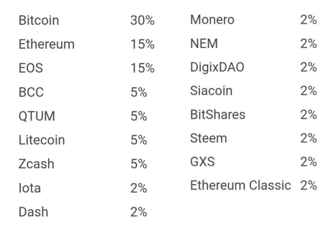 定投,指定期等额购买某一种或几种币。币种的选取最好符合:共识大、市值排名靠前、最好具有已落地项目。如果实在不知道怎么选,就按照老猫发布的“区块链全球指数”来配置。