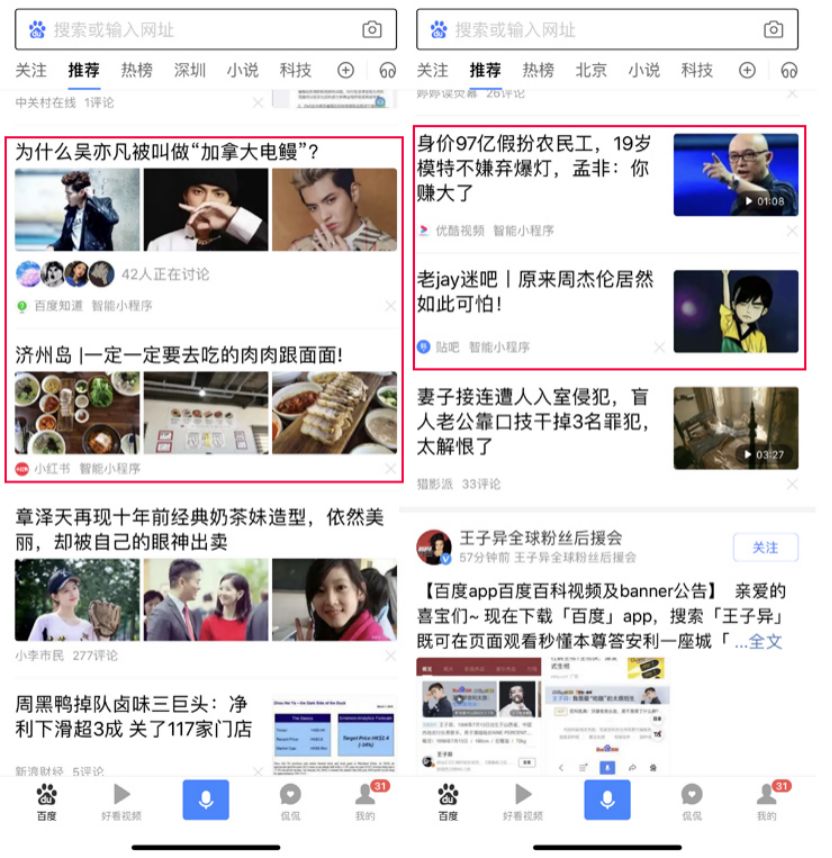想象一下,用户在百度App上刷微博,刷好看视频,追剧,甚至包括明星应援。