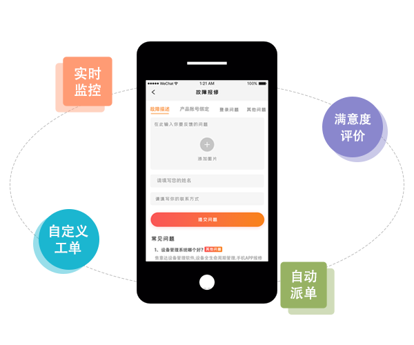 如果企业在工单完成后,将工单回访系统加入自动派单机制,售后管理者在系统内设置回访条件,当工单完成后自动回消息给客服,让客服可以通过手机微信和电话回访。客服通过微信或手机登陆售后管理系统,可以看到用户在服务过程中的工单状态及结果,并能及时查看售后服务状态。同时还能查看上门服务人员的工单记录,并支持拍照留存。如有疑问可拨打客服电话进行询问。对于在工单回访结束后依旧没有完成回复或未回访记录的用户,系统将自动记录用户满意度,并提供给回访客户服务经理进行回访监督,从而提高客服人员服务水平从而提高企业客服满意度和用户满意度。同时系统还支持手机自动拍照记录,以便后期回访时能够准确记录回访数据以及记录用户投诉记录和反馈。