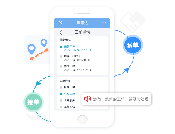 3)使用“售后服务工单助手”将售后任务分发到企微:在企微后台里点击“我要派单”即可将待售的工单分配到相应的工作人员手中。