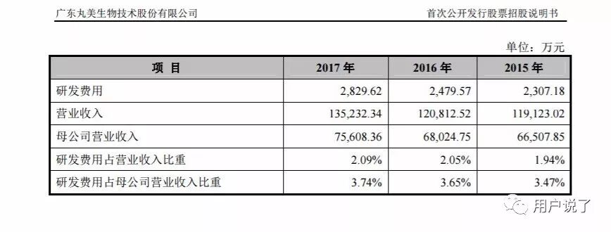 除了部分产品不合格和有瞒报行为,丸美生物在研发费用的投入与同行业上市公司相比也是偏低。