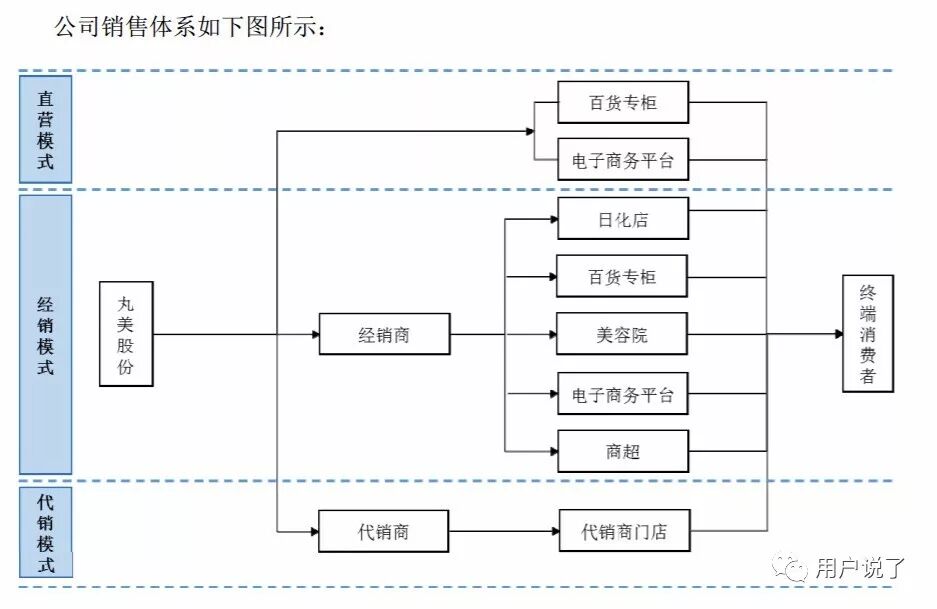 根据招股说明书披露,丸美生物的销售模式的是以经销为主,直销和代销为辅,同时覆盖日化店、百货专柜、美容院、电子商务及商超等多渠道。