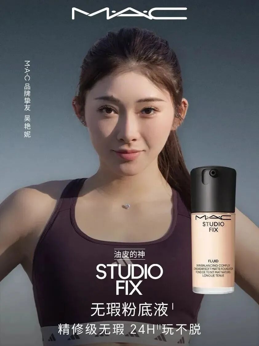 同样在2025年4月,跨栏名将吴艳妮以M·A·C品牌挚友身份,在广告中,吴艳妮“全天控油,持妆破纪录,每场比赛都让我赢得漂亮”的口号,将运动美妆 “竞技实力与外在光彩双在线” 的核心诉求精准传达,成为品牌抢占运动彩妆赛道的鲜活注脚。