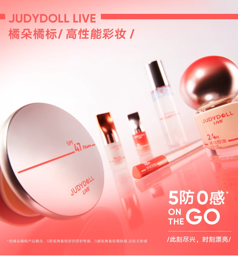 以橘朵为例,其在2025年4月专为户外开发的「橘标」运动线,主打“5防0感”——防水、防汗、防晒、防蹭、防高温。该系列的“游泳不掉色”双头三叉水眉笔,将眉笔与眉毛“雨衣”相结合,游泳60分钟不掉色,适合游泳、冲浪、流汗多等场景;同系列的“反光盾”防晒粉饼SPF47 PA+++,粉体组成反光盾,三重防晒物组合实现防晒红、防晒黑和防晒老,实现户外强定妆、40.2℃爆汗不脱妆效果。同系列还有持妆粉底液、液体腮红、液体眼影等产品,目前天猫销量良好,表明其具有良好的商业潜力。