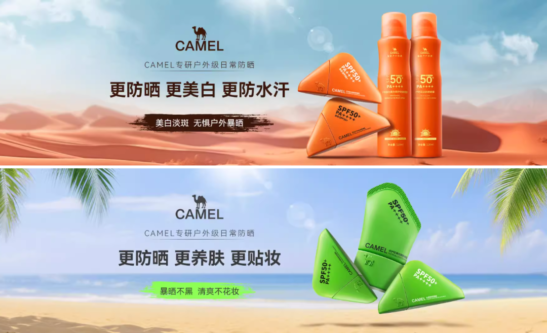 骆驼是这一路径的典型代表。2025年3月,该品牌正式推出美妆子品牌“骆驼户外美妆”,以户外防晒为核心切入点,打造专业级户外防晒和专业级日常防晒系列。