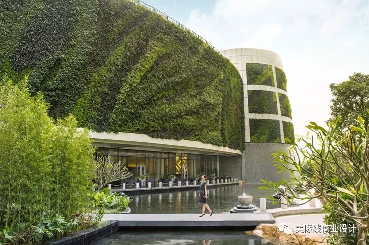 他们不仅扩大了客房的落地窗和阳台的空间,还想尽办法将自然引入室内。木制的镶嵌,装饰用的石头以及郁郁葱葱的绿色植物及室内瀑布等,都是让旅客放松心情的办法。