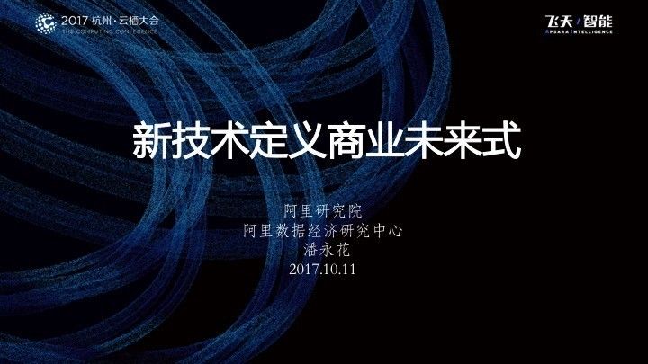 10月11日,云栖大会在杭州召开,阿里数据经济研究中心秘书长潘永花在“阿里巴巴全球创新研究论坛”上发表题为《新技术定义商业未来式》的演讲。