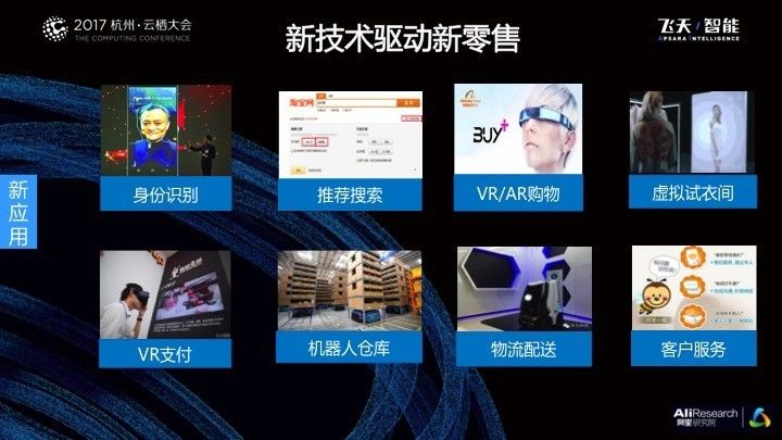 从具体的新零售应用场景来看,未来购物的场景从头至尾一直都有新技术的身影。从身份识别、到个性化推荐搜索、AR/VR购物、购买服装时的虚拟试衣间,再到VR支付、仓储、物流、客户服务,都是新技术在支撑。比如,菜鸟机器人仓库从去年开始就已经落地,今年有更新的升级。