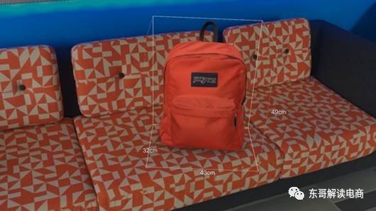 一款背包通过AR易购被“放置”在沙发上