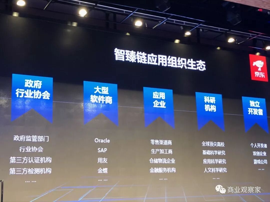 《商业观察家》重点关注了京东此块业务发展,因为从零售角度看,构建强协同的产业链生态圈是当下市场都在做的事情,而能否形成强协同产业链生态圈则取决于上下游数据能否实时共享,是否有工具将链条高效贯通、连接、可追溯、不可篡改。