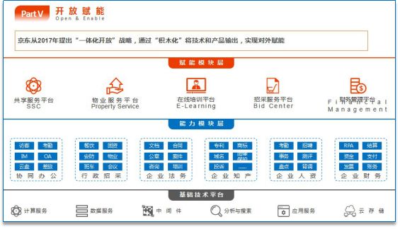 开放赋能就是将内部的系统开放出来。集团企业信息化部从2017年提出“一体化开放”战略,通过“积木化”将技术和产品输出,实现对外赋能。随着积木化的深入,集团企业信息化部已经具备了赋能外部企业的能力。