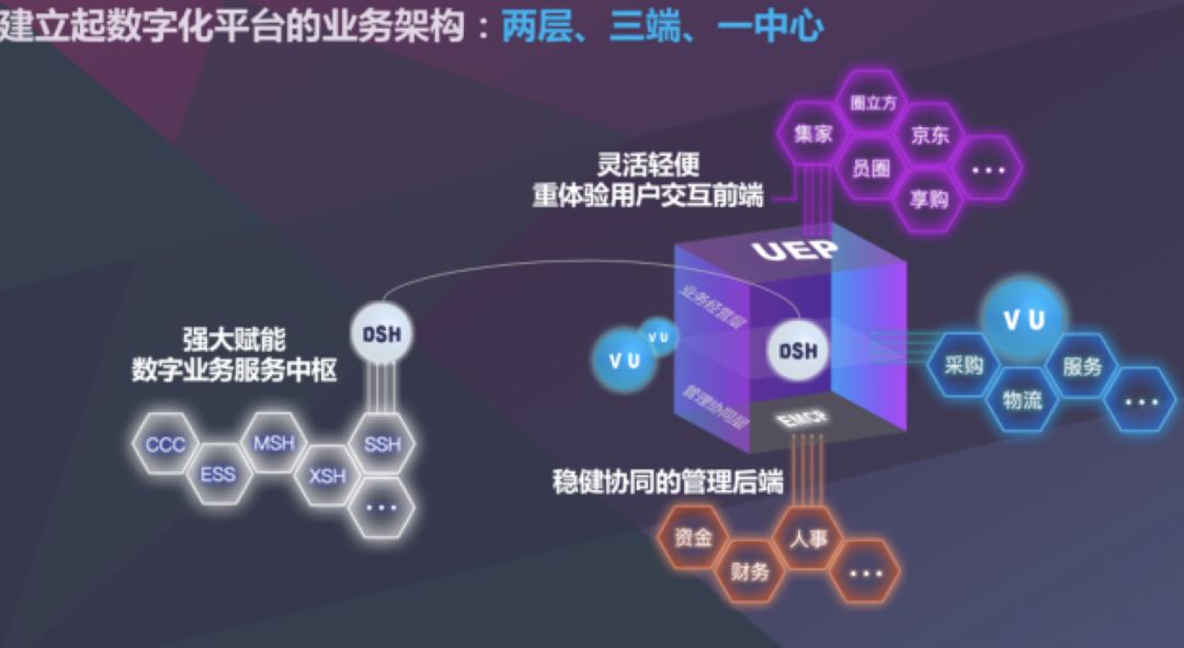 在2015年底,提出了为期10年的全渠道数字化转型战略计划,目标是通过建立智慧商业系统CIS3.0以及相应的运营组织和能力,着手解决当前公司和行业在发展过程当中遇到的困境,如何让线上和线下、企业内部和外部、经营者和消费者如何更好融合,如何更好地服务消费者履行我们成为最专业的全渠道零售服务商目标。