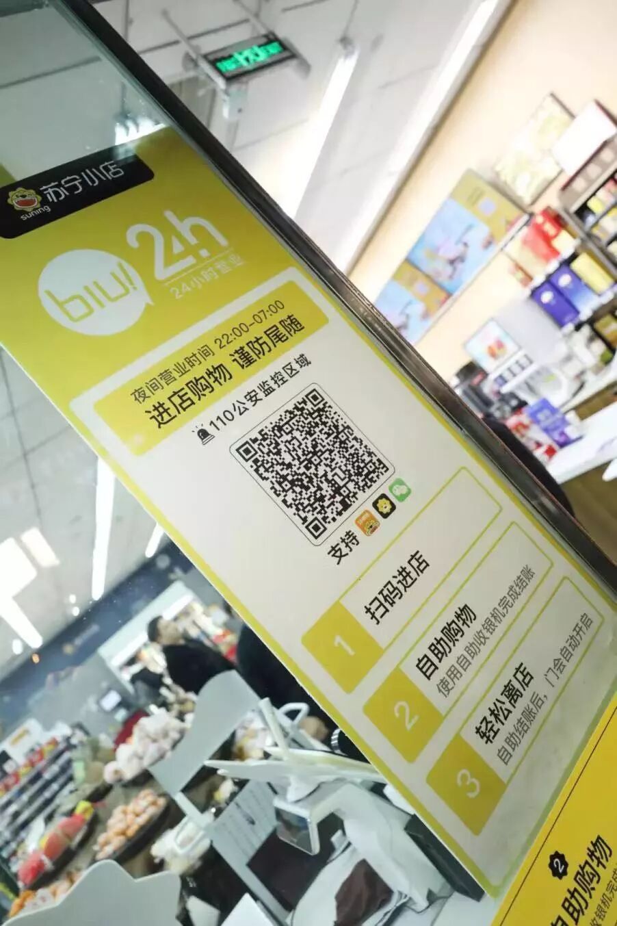 “核武器”之三是Biu×24h一批无人店上阵。今年2月15日,苏宁小店Biu×24h在南京玄武诺富特酒店一楼开始营业,目前第一批规划的20家无人店将在北京、上海、广州、南京等一二线城市陆续上线。区别于常规的无人便利店,在更换为电子自动门之后,苏宁小店Biu×24h白天安排店员正常经营,夜间10点到清晨7点则改为无店员值班,化身无人便利店。消费者只需扫描电子会员码进店,使用自动收银机即可进行买货自助扫码结账。可以说是一种在普通便利店和新型无人便利店之间寻求平衡的一种更深的探索,大大方便社区各种人群。