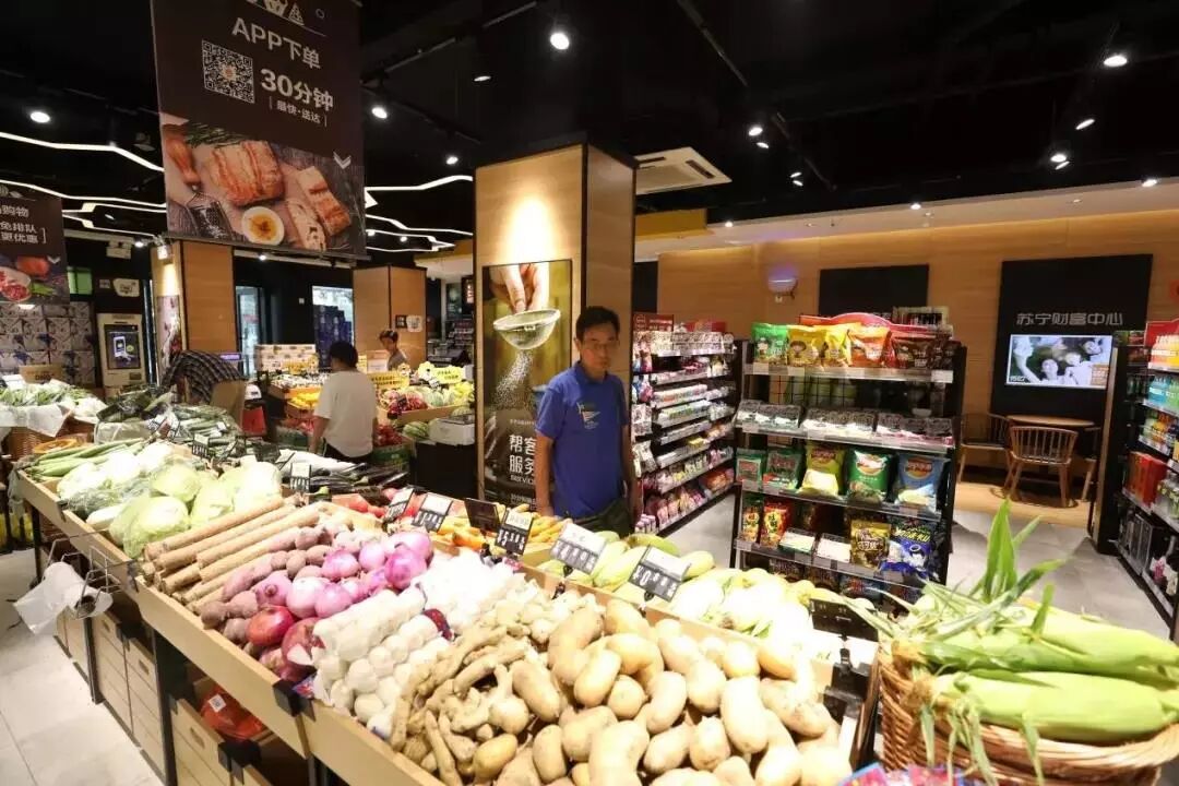 据悉,南京一家社区型的苏宁小店有水果品类50多个SKU,蔬菜品类60多个SKU,收银台旁边还有早餐柜,包子、鸡蛋、粥、豆浆、关东煮等小食,生鲜、鲜食成为苏宁小店的特色。如果通过苏宁小店APP下单,这些还可以直接外卖到家,一点也不逊于巨头打造的生鲜综合体。日后这家小店还将接入小店金融、邮局、有房、帮客等服务,可谓“麻雀虽小,五脏俱全”,活生一幅大商超的样子。