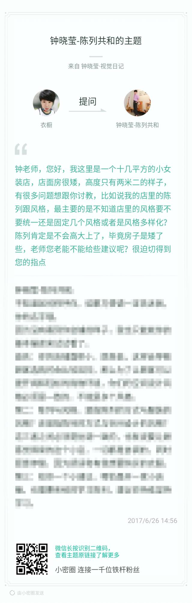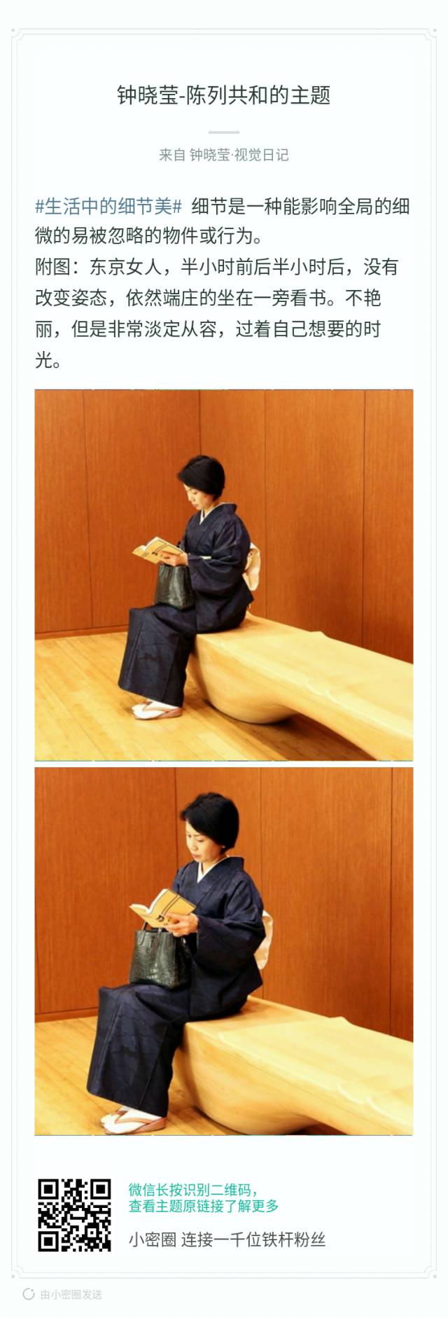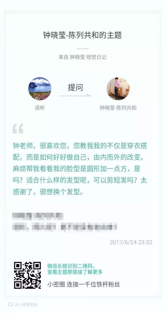应我们公司CEO欧阳先生的强烈要求,我开通了【钟晓莹·视觉日记】小密圈,他经常说:“1000个铁杆粉丝养活一个手艺人,把那些真正喜欢美、想要学习美的人聚合在一起,让彼此之间产生更深的链接和交流是我们应该做的。”