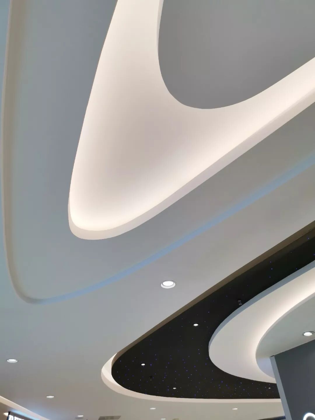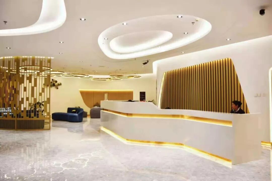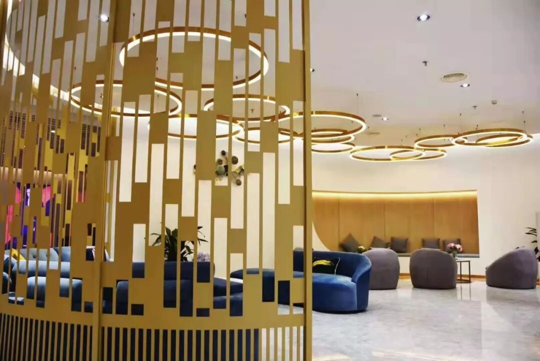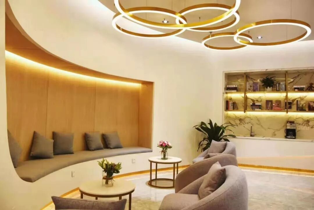 漩涡形状的柱子模仿植物的形态在室内自由生长,天花上用环装的灯带作为装饰,打造一个极具艺术感的美学空间。