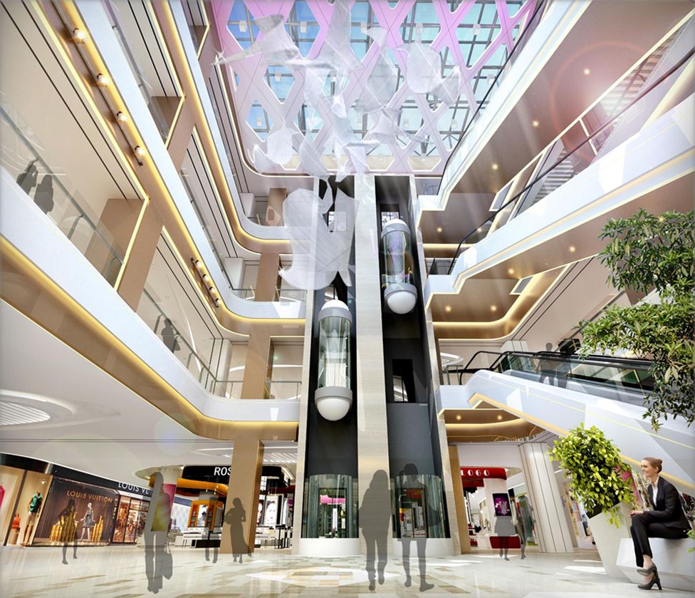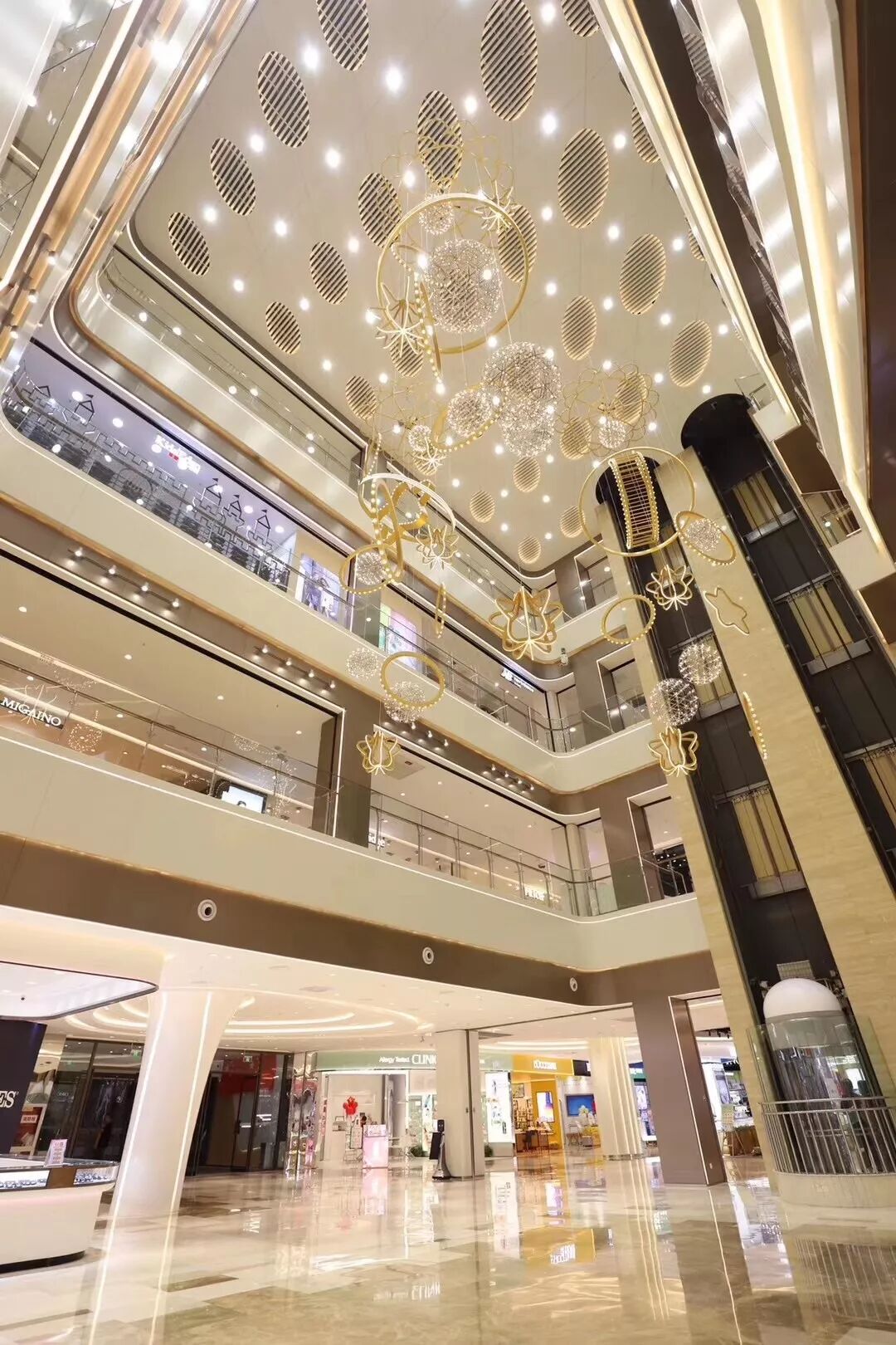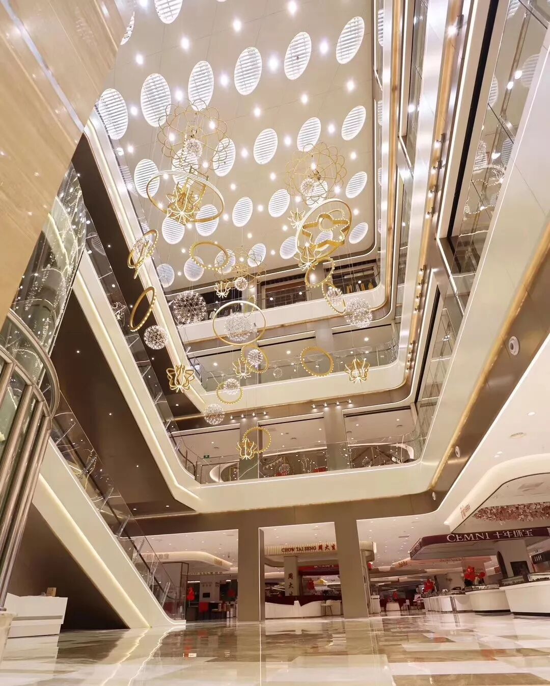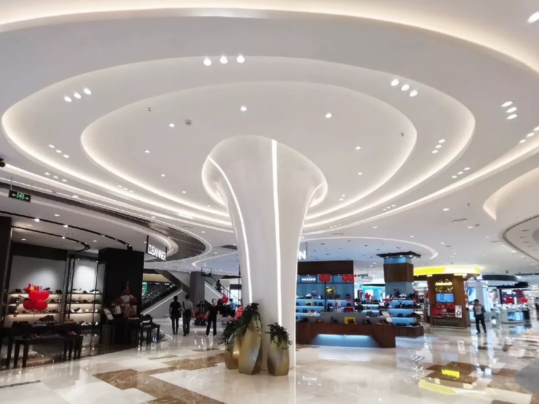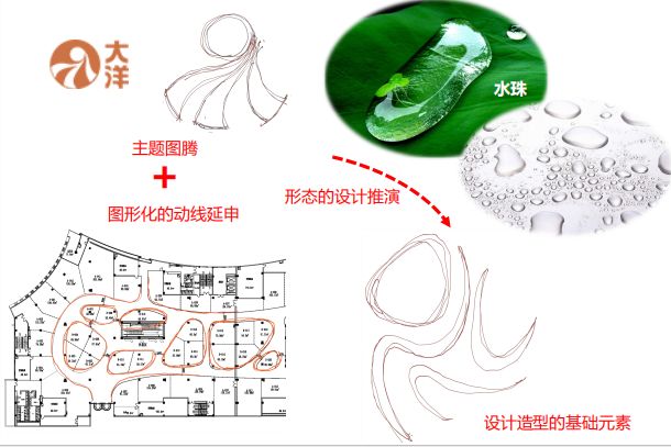 上海其美设计本次为大洋百货江北店设计范围包括:1F-2F商业室内公共区域设计、3F-4F商业室内规划调整、1F-2F室内二次机电设计。 概念设计在概念设计上,上海其美设计结合大洋百货的logo,将图形化动线进行延伸,并结合自然元素,构成设计造型的基础元素。