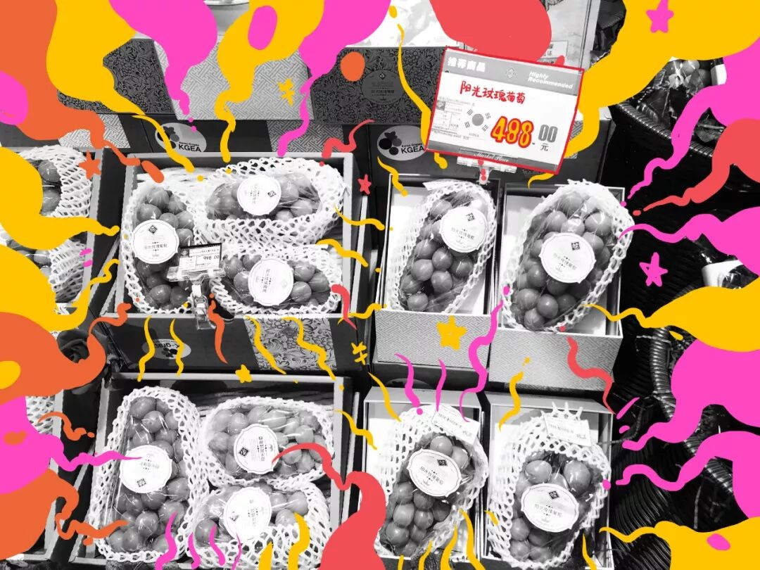 BHG超市里,488一份的阳光玫瑰葡萄正在火热售卖中