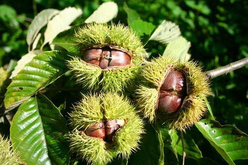 尖栗又叫锥栗,一个包里只有一粒,约中指大……