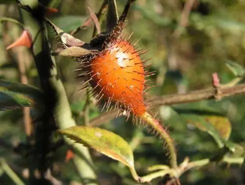 或叫鸡咬陀、鸡鸭陀,蔷薇科植物金樱子植物的果实。有刺,需把外面的刺刮掉,剖开,再把里面的籽和毛抠干净来吃。秋季成熟,味甜。可以泡酒,也可以制药。
