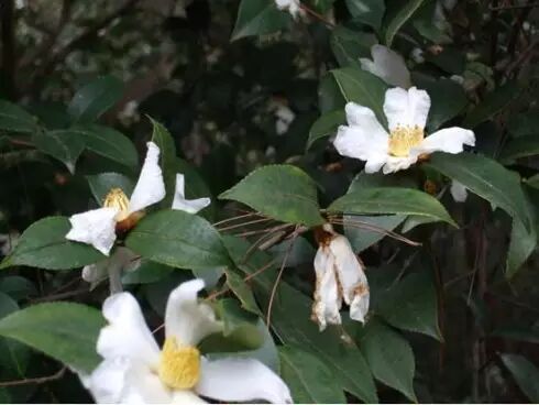 山茶树的花,花蕊中央往往一滴蜜露,常拿根芒箕蕨的茎去芯当吸管来吸蜜,好甜呀!