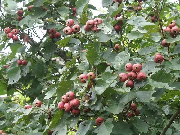 又叫野石榴,蔷薇科植物山楂(或变种山里红)的果实。冰糖葫芦就是用它做的,不过野山楂果小皮薄一些,味道酸甜,不错的野果……