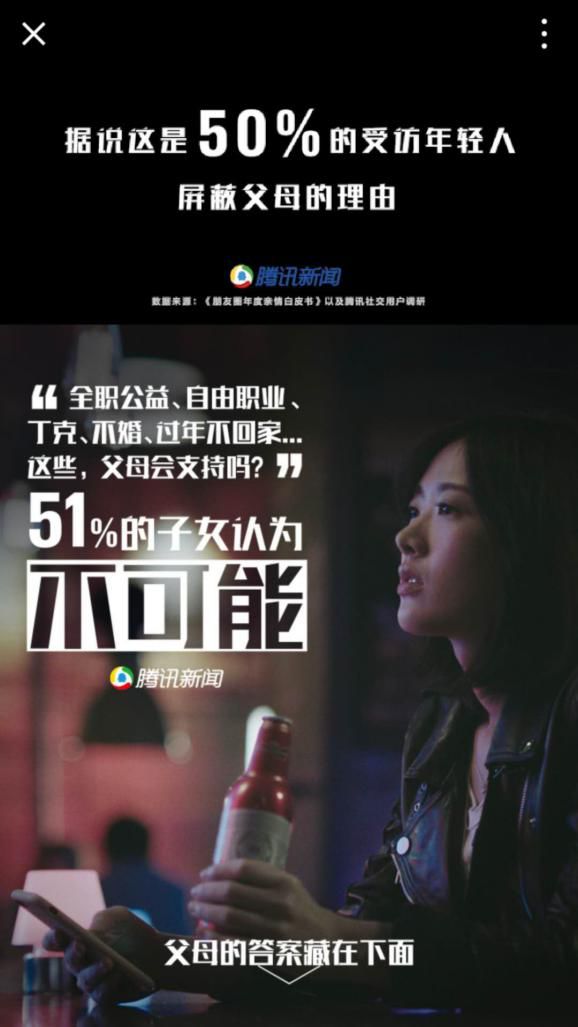 评论数(0)最近,一个名为《据说50%年轻人屏蔽父母是因为?》的广告在我的朋友圈刷屏了。