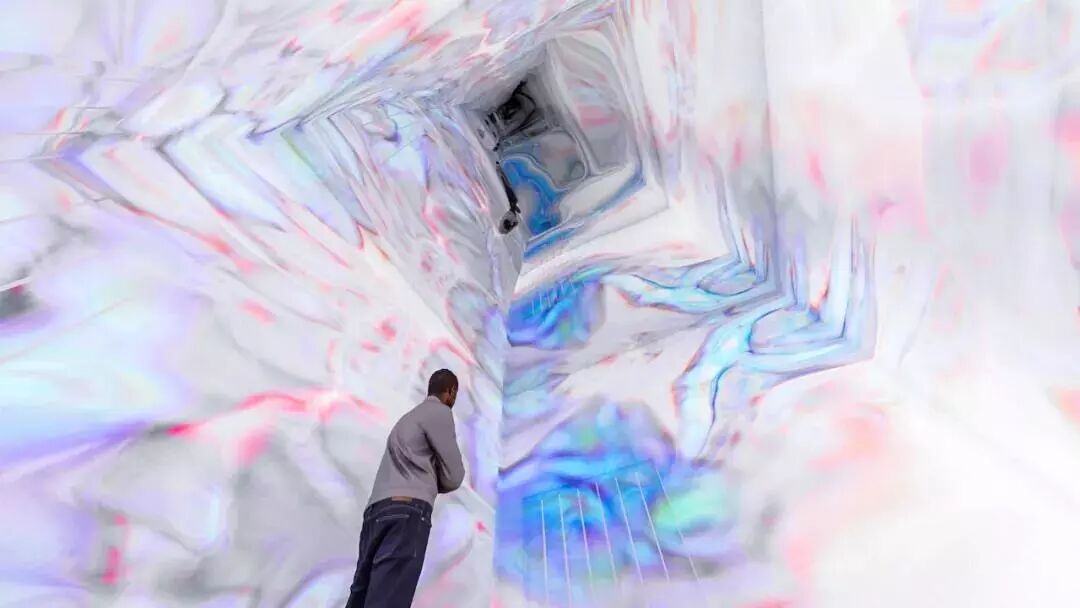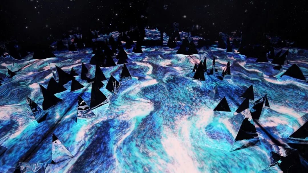 创意呈现:我们利用 AI 技术采集十万张油画的图像色彩,生成变化为绚丽自由的再生艺术粒子,当观赏者在空间中行走,会实时影响引擎的流动变化,使观赏者仿佛在美术馆的现实与梦境中穿梭。