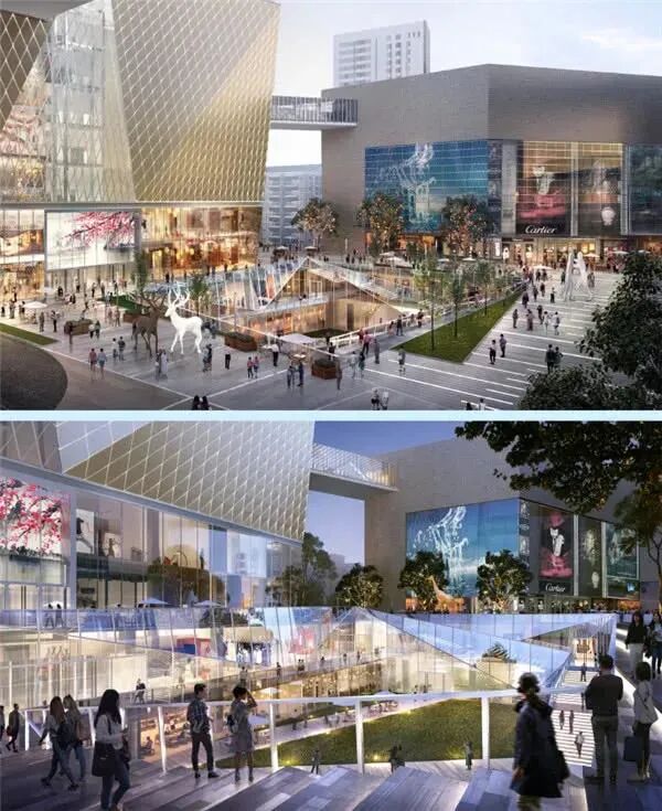 根据规划,将在地块西侧新建约1800㎡的下沉式广场,与德基一、二期地下商场及其他文化娱乐活动场所相连;地上通过空中连廊将德基一、二、三期连接成一个整体,使整个德基广场实现地上、地下、空中的立体连通,打造具有生活、休闲、文化、娱乐功能的“城市客厅”。