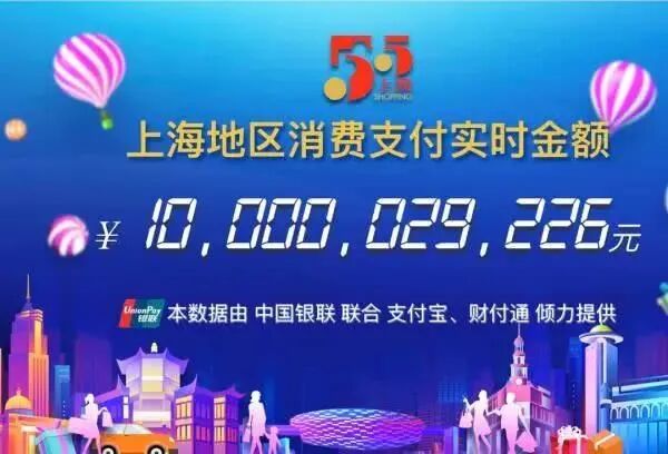 2、上海启动“5·5购物节”18小时消费支付额破百亿5月5日,上海市商务委称,由中国银联联合支付宝、财付通为本次“5.5购物节”提供的实时数据显示:自5月4日20:00购物节启动后,4分钟支付总额破1亿元,截至5月5日14:12,上海地区消费支付总额已超100亿元。