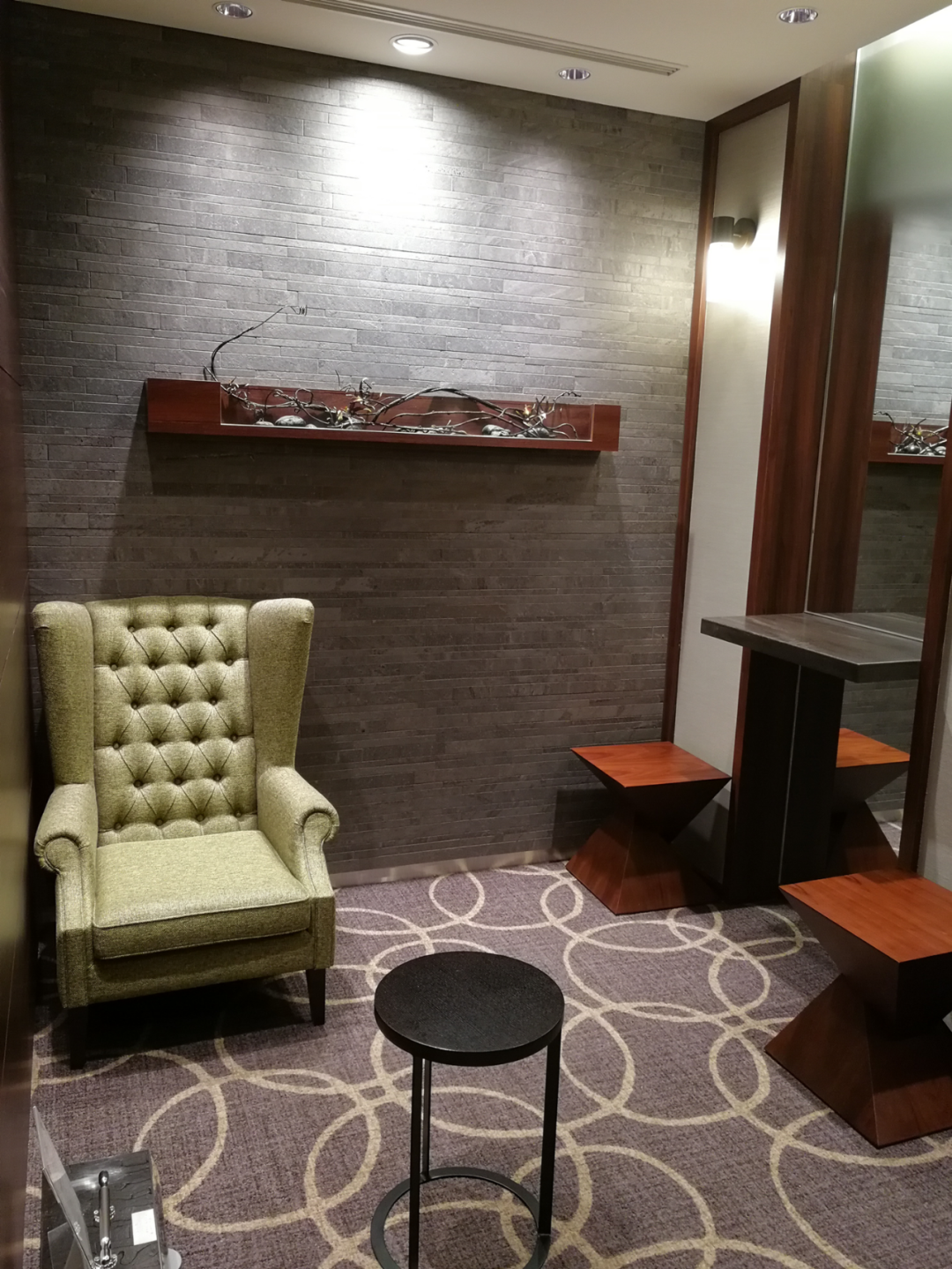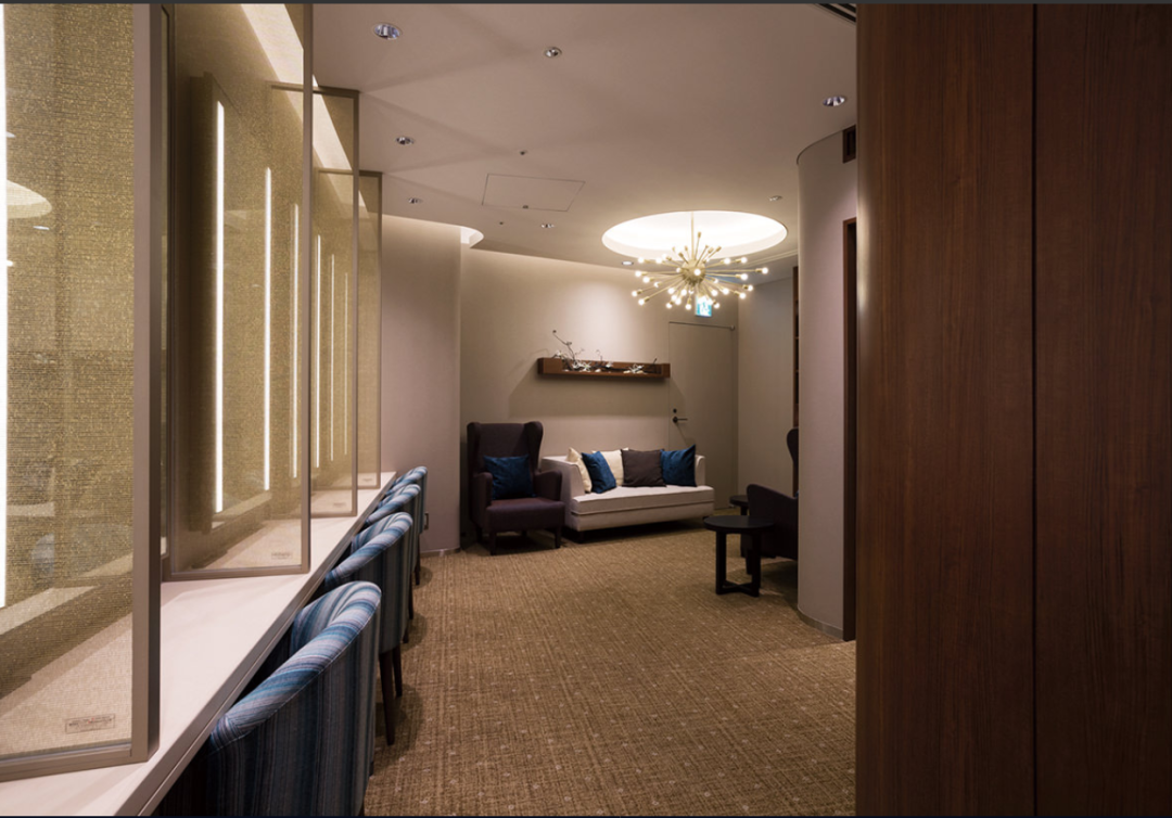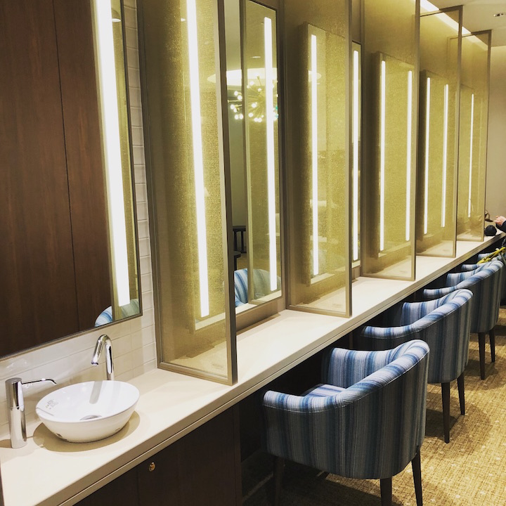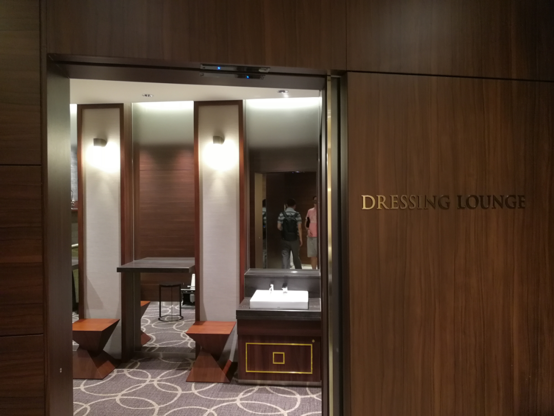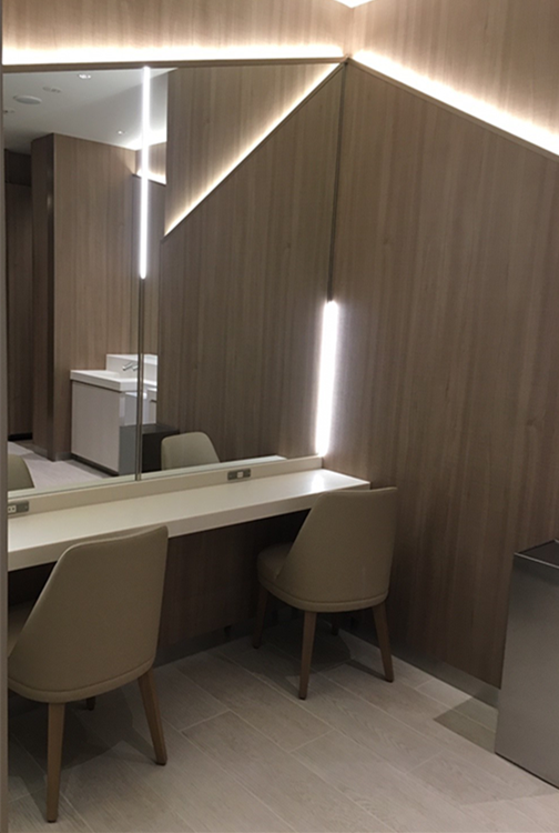3F女士洗手间配置有一间DRESSING LOUNGE,有舒适的沙发座椅,宽敞而独立的化妆台。可以在这儿换衣服,化妆。