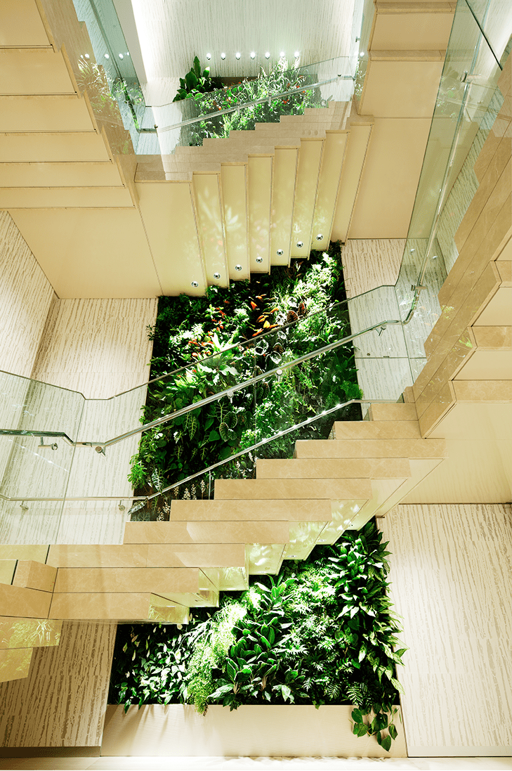 由300棵树木和8000株植物构成的【GRAND GREEN GARDEN】。开业前,邀请了居住在周边的孩子们来亲自参与种树,这次的活动也作为格林木与小顾客们共同成长的象征。