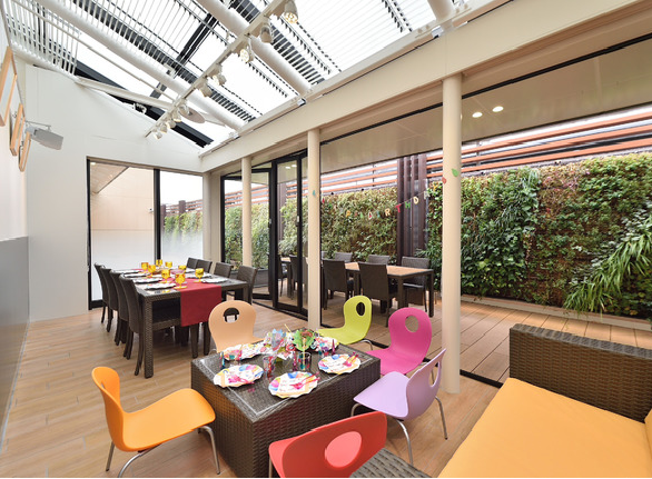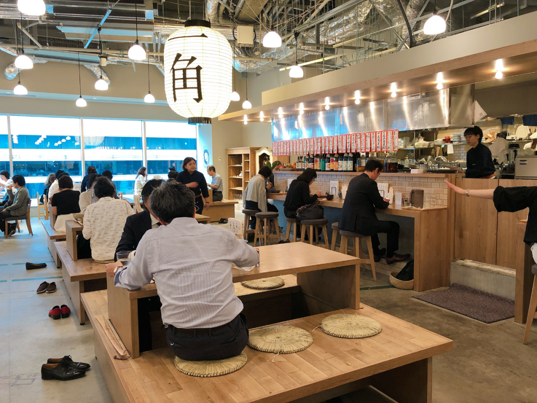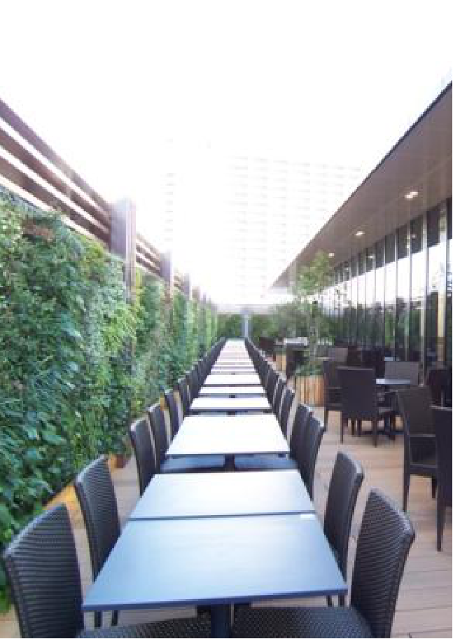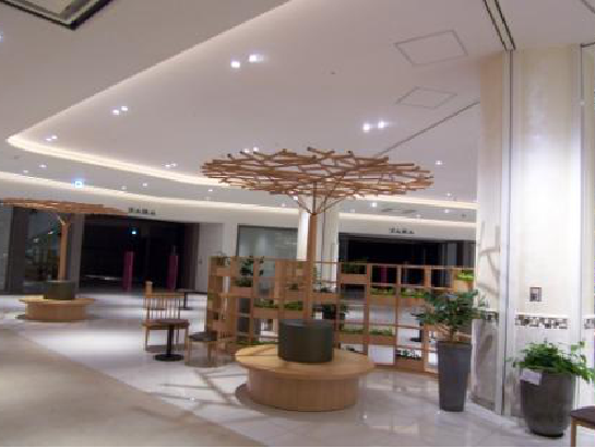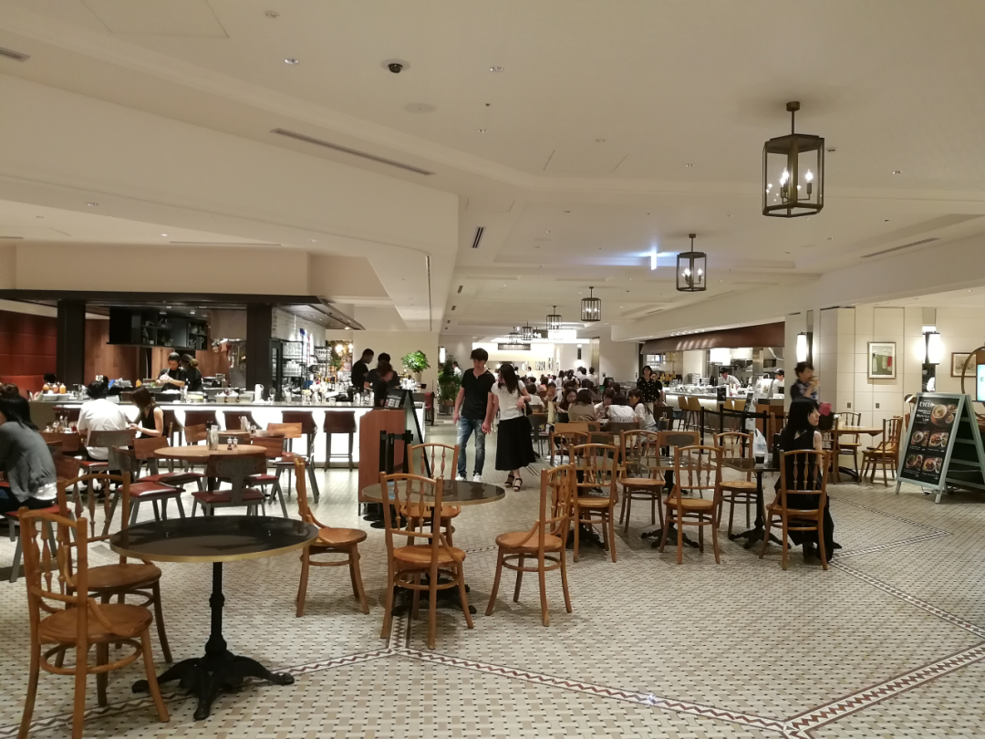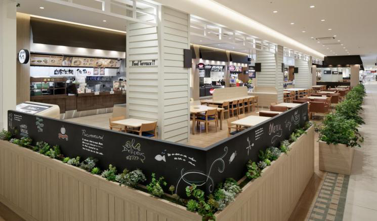 美食广场——有绿色治愈系效果的美食广场坐席。既稳重又时尚的就餐环境和以木质材质为基调的自然环境统一,形成了与传统美食广场不同的感觉。天气好的时候可以坐在里面的露天坐席,顾客可以坐在被绿植环绕的空间里就餐,优雅地享受美食。内设800个座位。还有儿童座椅的配置,也可以让妈妈们安心使用。还有针对家庭用的包间似的空间,让长辈们也可以舒适地就餐。