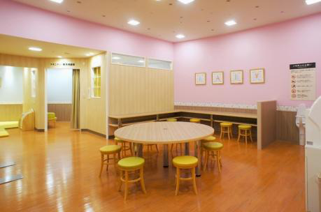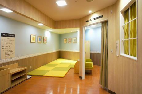 不需要再让妈妈们排队等候,而且还可以随意交流,把妈妈们的愿望可以反映出来的交流空间在这里实现了。设置了一个可交流的大型哺乳室,在这里,可以通过妈妈们之间的交流与分享,达到改善孤独育儿环境,并解除了同年龄家长间的烦恼的作用。规模上确保达到了比一般型哺乳室大三倍的面积。而相对小型的哺乳室也是尽量缩小,改变成没有间隔的大型哺乳室。