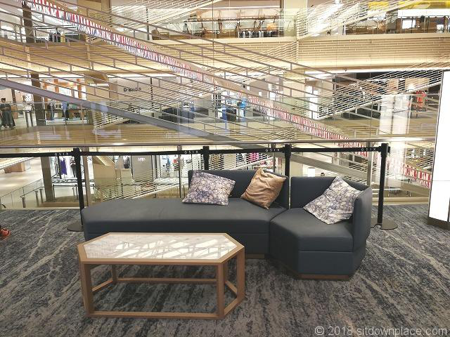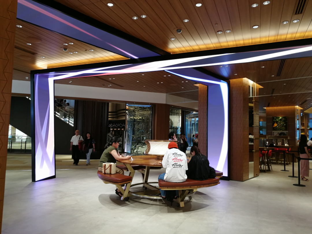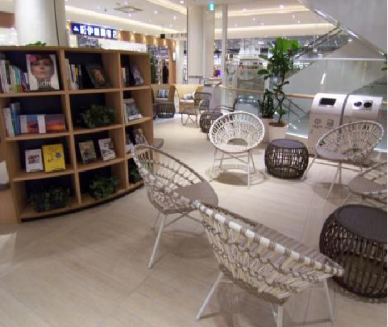 公共空间中不仅仅具备了电子导示屏、DP点的设置等信息传达功能,同时还设置了可以让顾客沟通交流以及休息的座椅。全馆共设置了35个可以让顾客松快休息的地方。