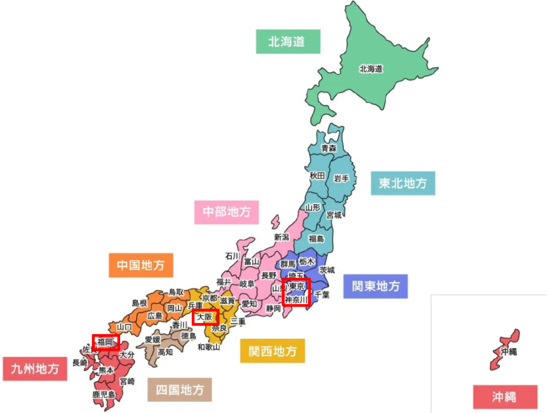 大阪:关西地区商业中心,日本人口第三大城市横滨:日本人口第二大城市,毗邻东京福冈:日本南部九州地区商业中心